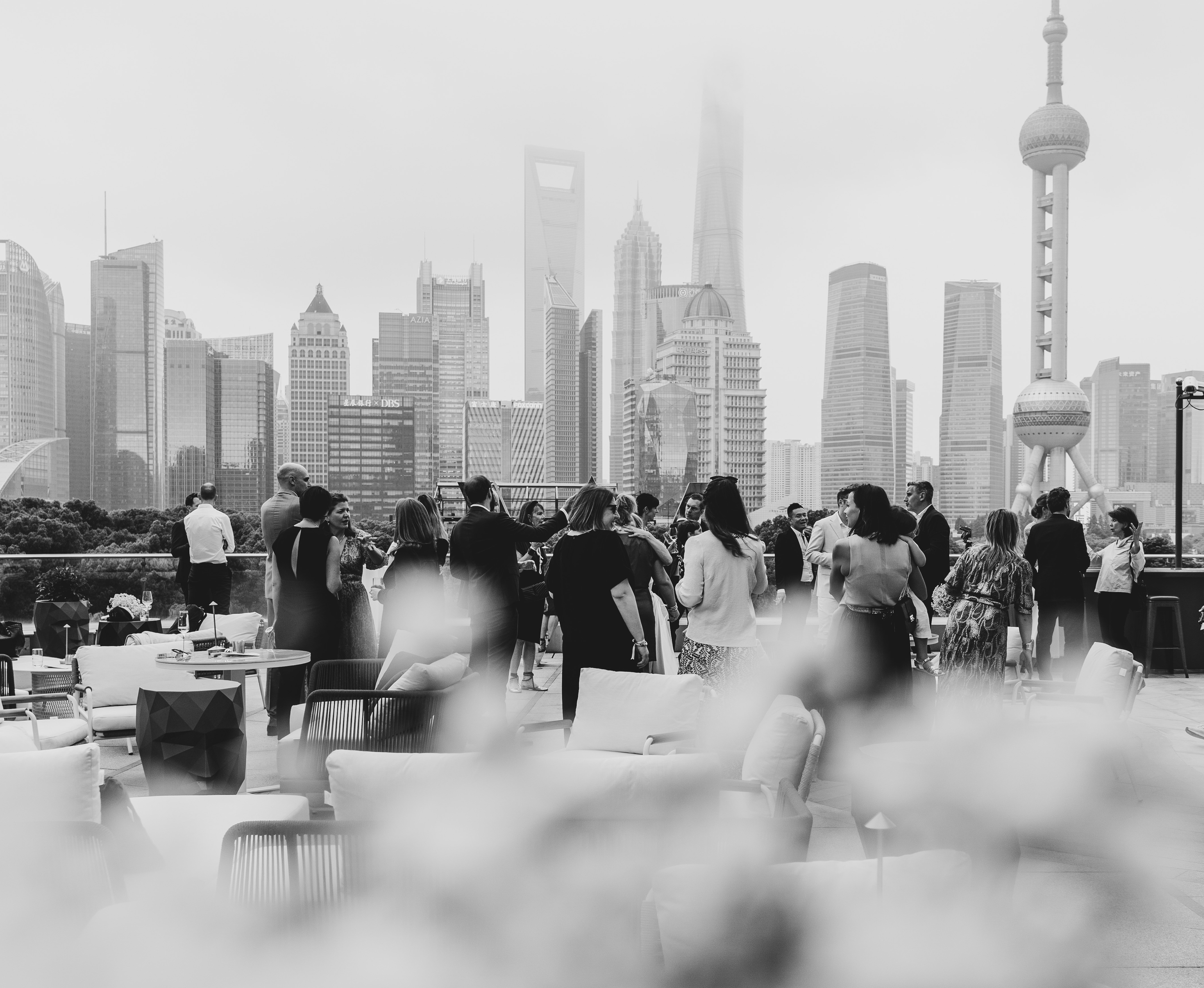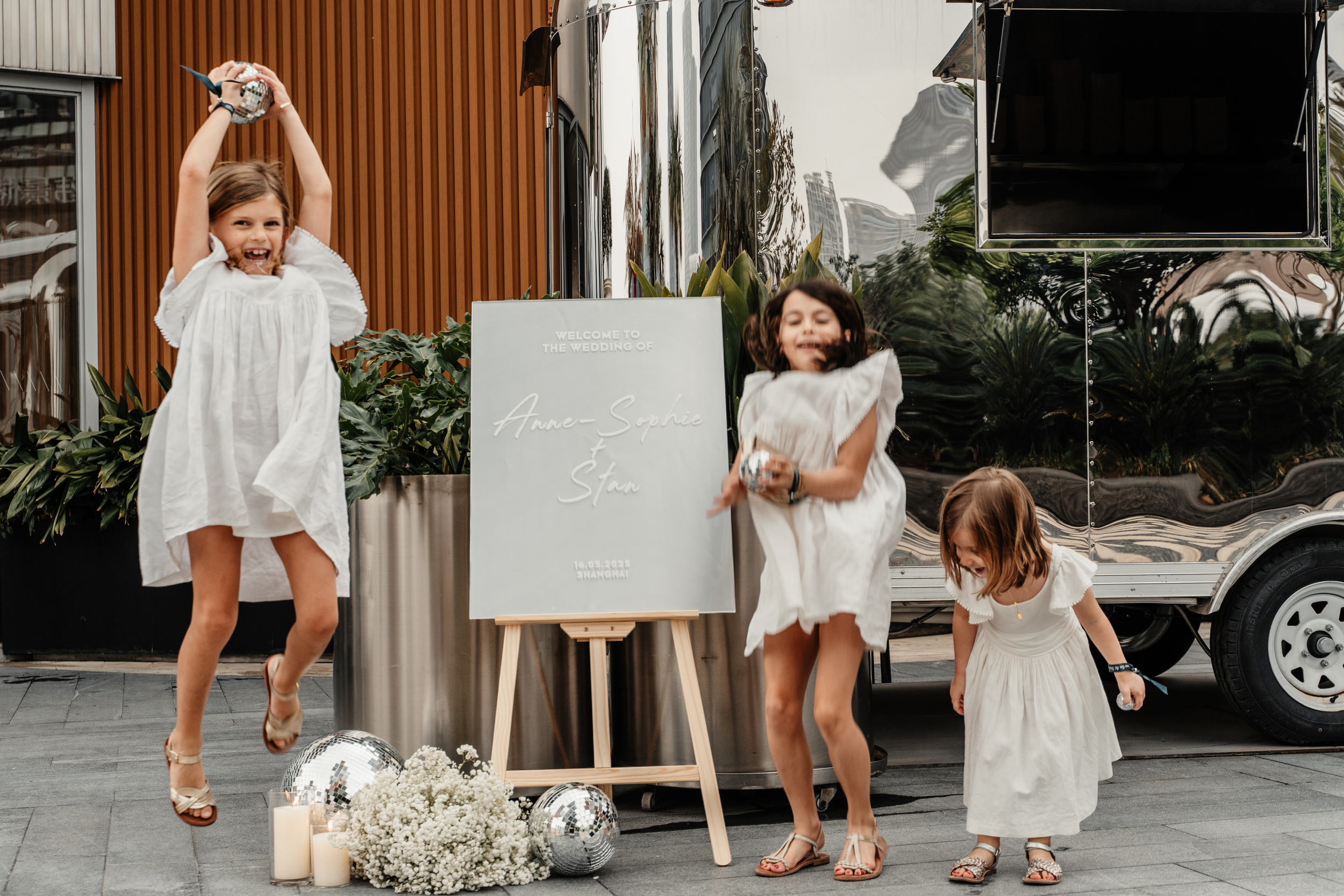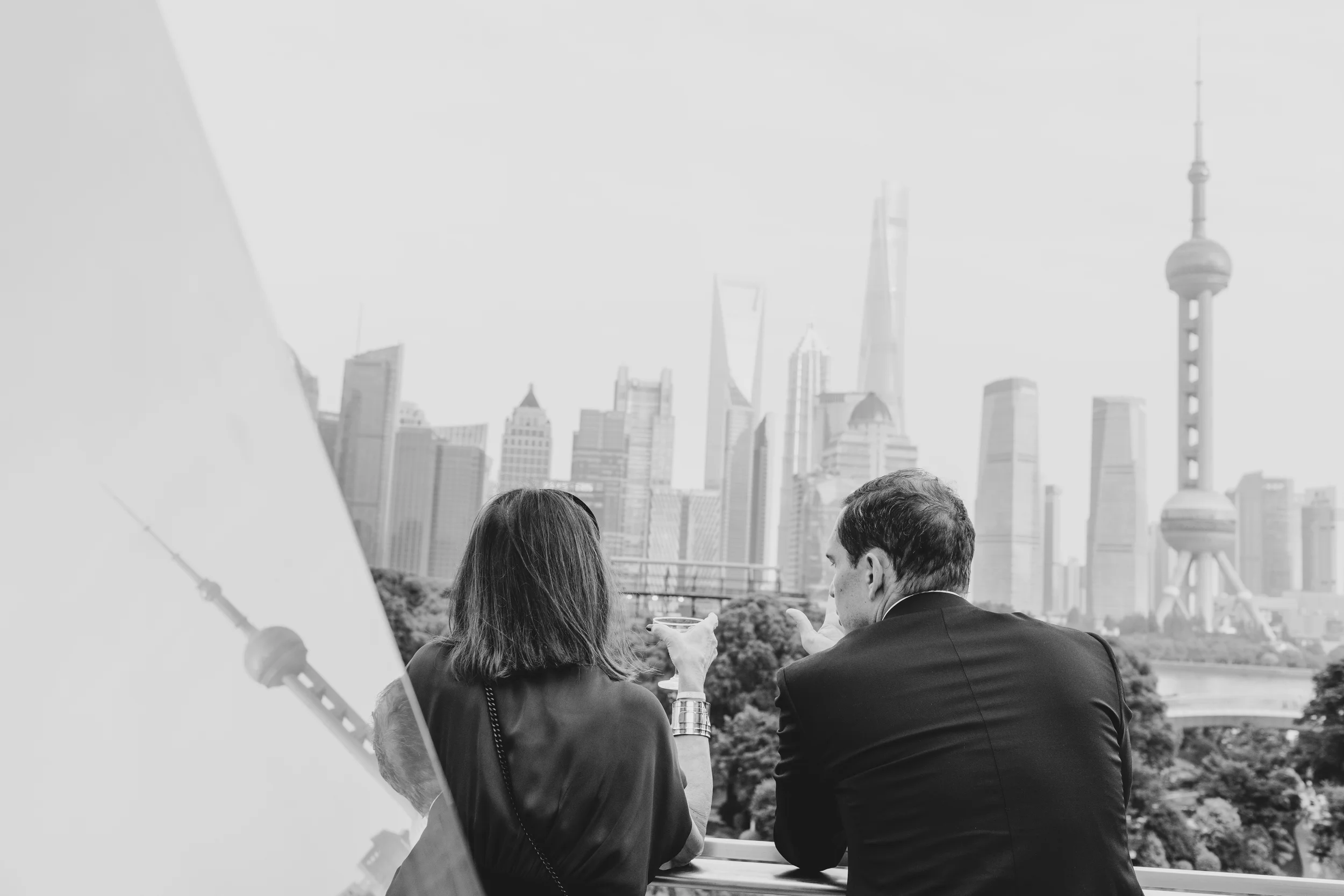 Anne-Sophie and Stanislas chose Shanghai to seal their love story in a modern, elegant celebration. After a civil ceremony at the French Consulate, guests gathered for golden hour cocktails at the W Hotel rooftop, followed by dinner and dancing at the iconic Fotografiska venue.