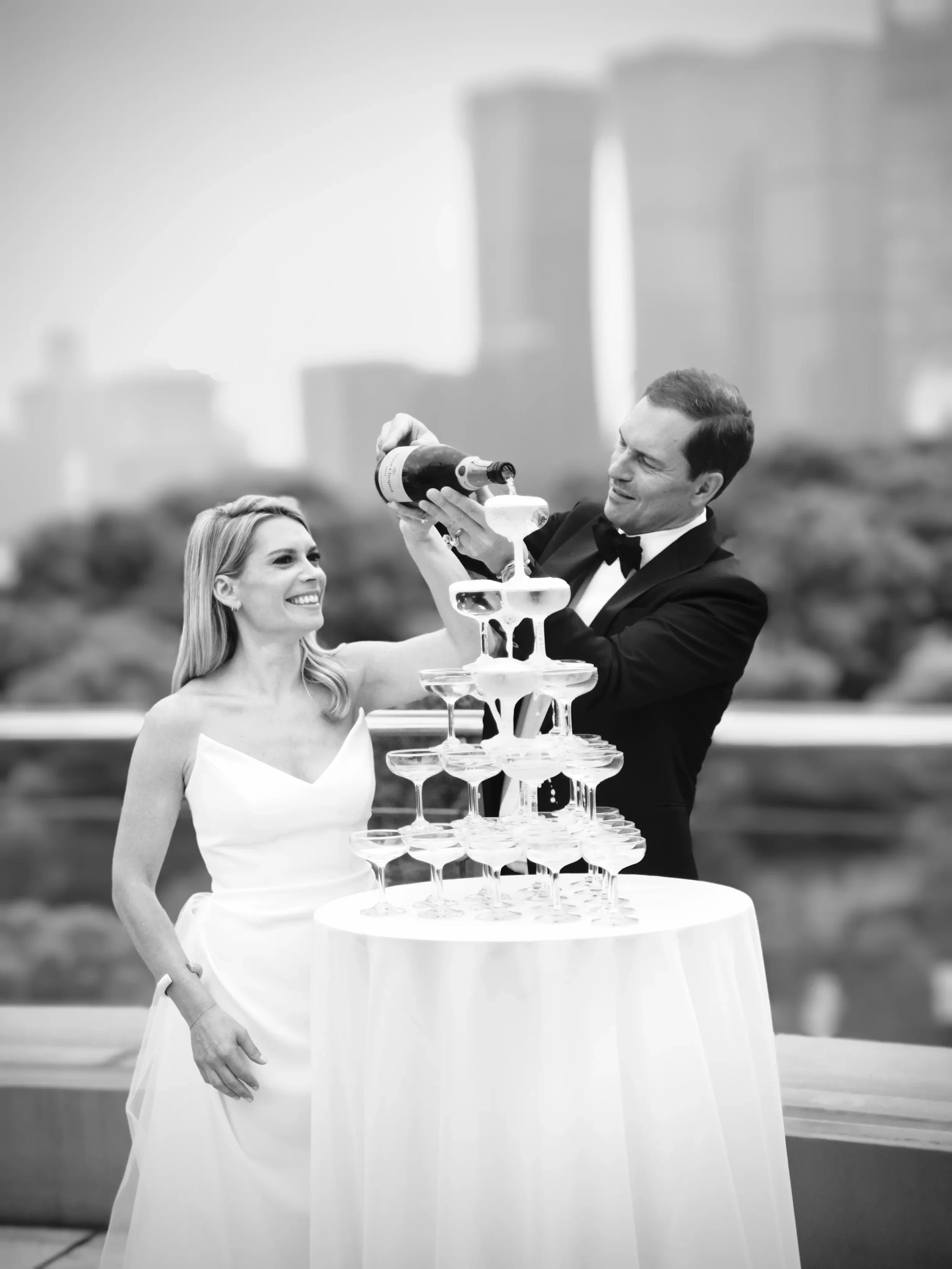 A modern, minimalist wedding in Shanghai with rooftop cocktails and a chic dinner celebration.